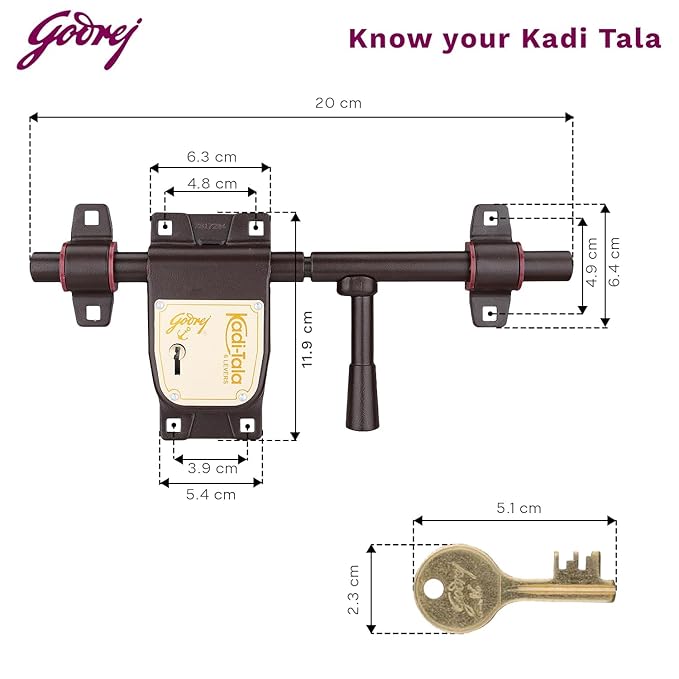Godrej Kadi-Tala 200mm. This padlocks lever is made up of brass to give a superior strength and the handle is made of sheet metal which provides an extra strength to the lock for better security. The operation of this padlock is very easy and simple to use. Lock is unlocked with one-rotation (clock-wise) of key and bar is to be withdrawn. For locking, handle bar is to be pushed in and then key is to be rotated, one turn anti-clockwise. Handle bar can also be kept in locked condition in withdrawn position, by rotating the key in anti-clockwise direction.